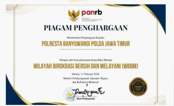 Polresta Banyuwangi Raih Penghargaan Zona Integritas Menuju WBBM Tahun 2025