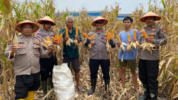 Wujudkan Ketahanan Pangan, Polsek Balongbendo Panen Jagung di Desa Wonokupang