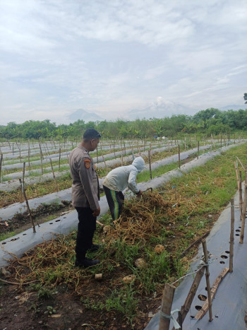 Anggota Polsek Tarik Cek Pengolahan Lahan Melon di Desa Kendalsewu