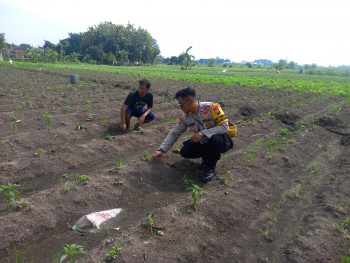 Bhabinkamtibmas Desa Balongtani Dukung Program Ketahanan Pangan Lewat Perawatan Tanaman P2B