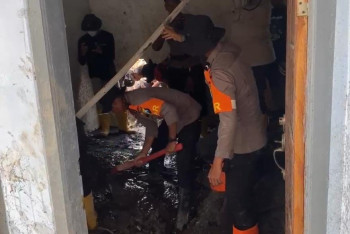 Polisi Bersihkan Rumah Warga Terdampak Erupsi...